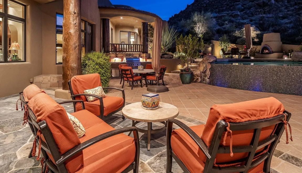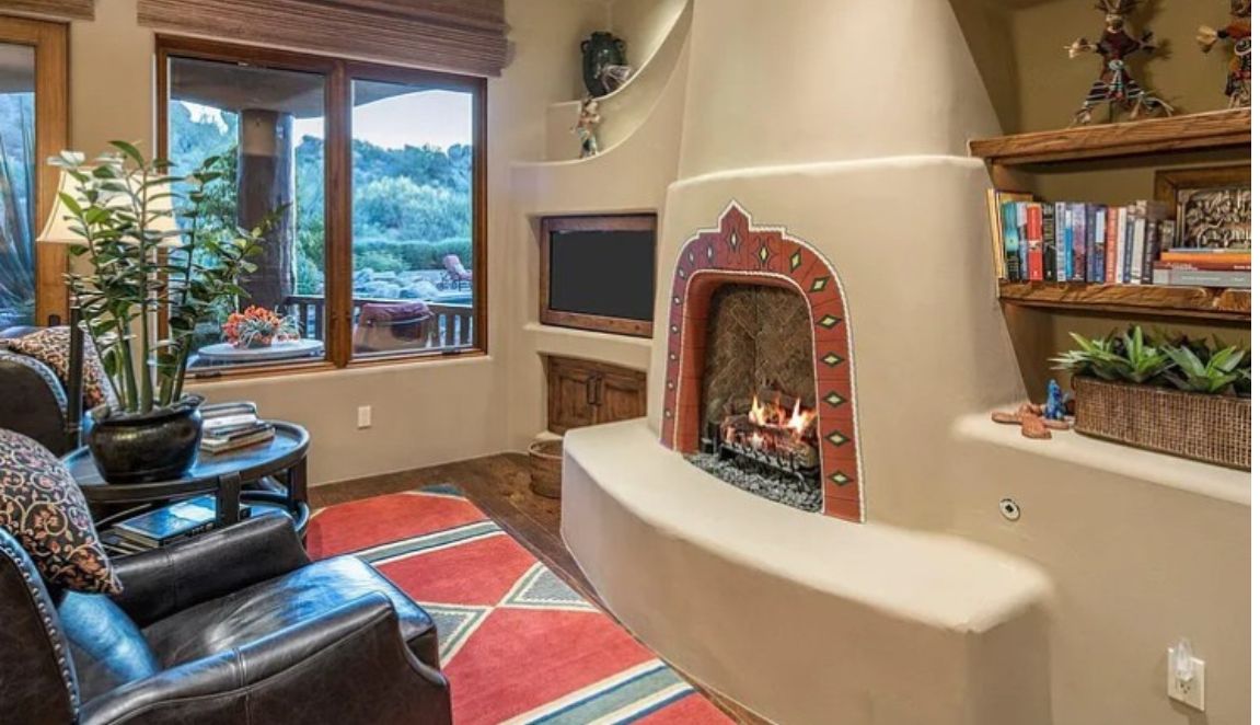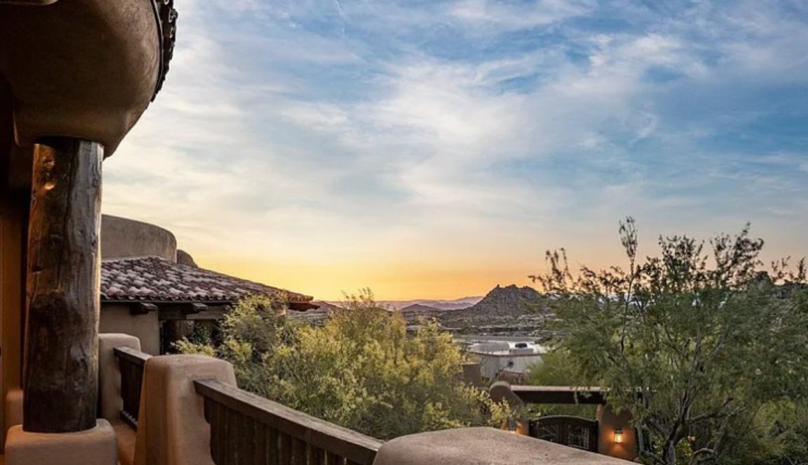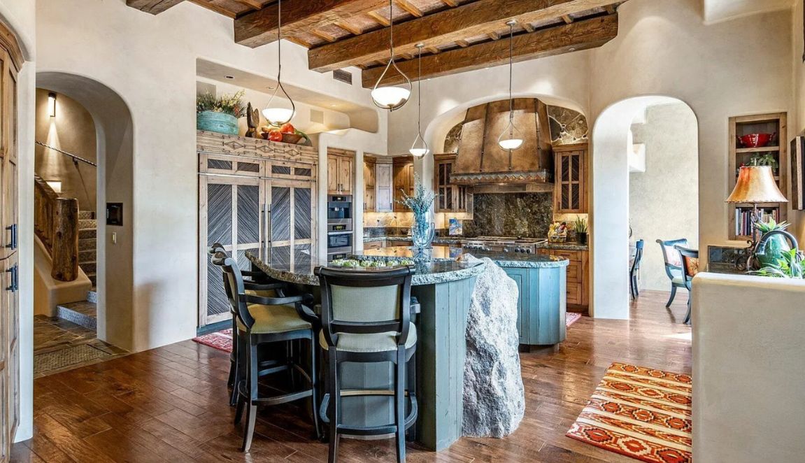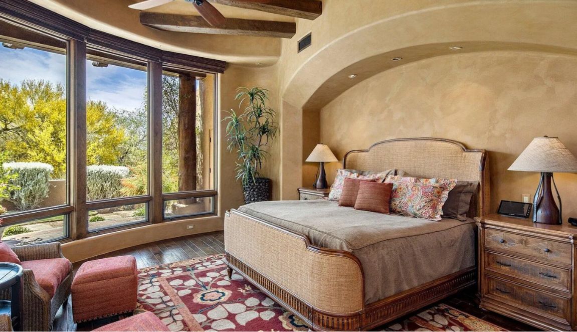 Surrounded by desert beauty and framed by native vegetation, this Windy Walk retreat captures the essence of Pueblo-style living. Curved plaster walls, rich wooden beams, and a soft, organic footprint invite harmony with the land.